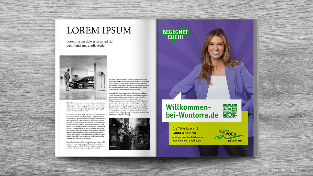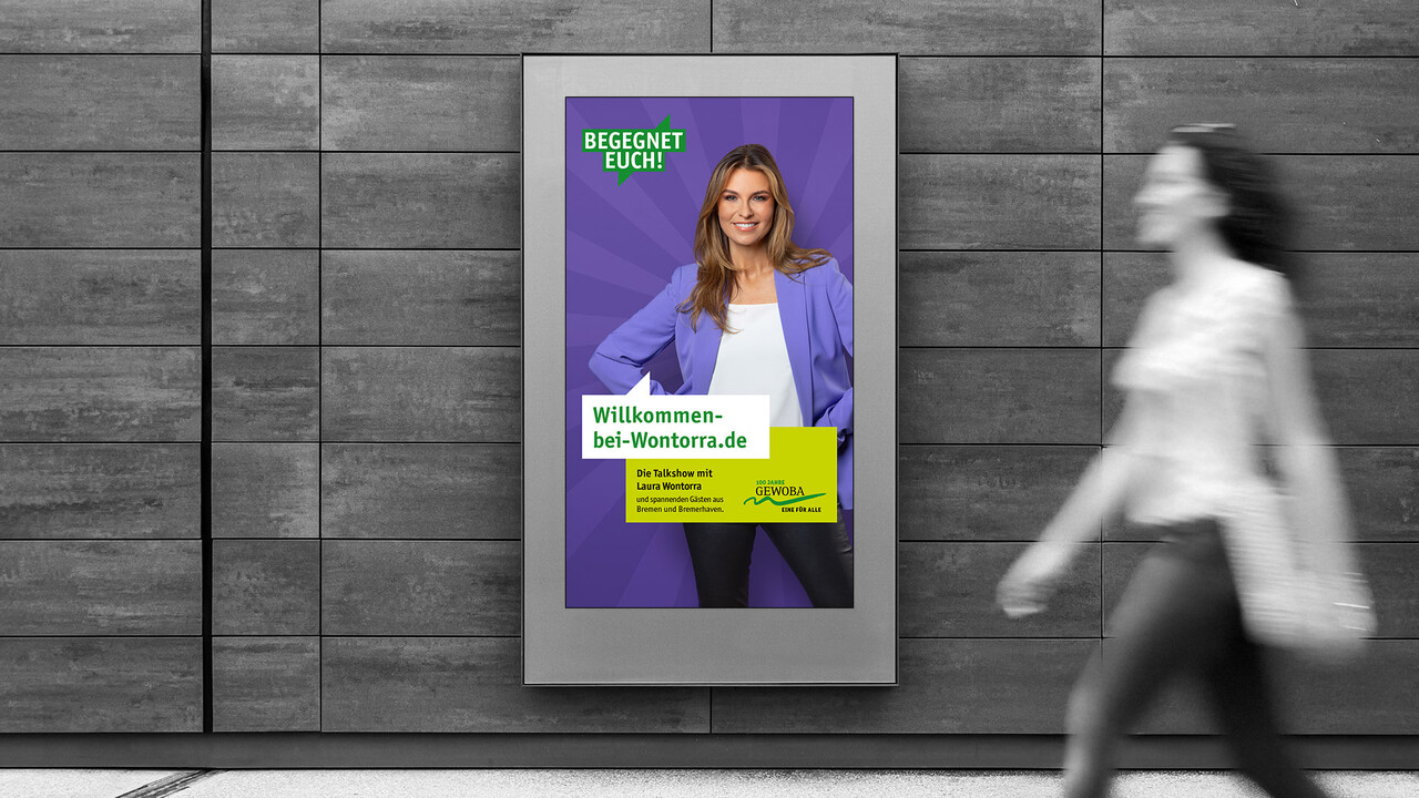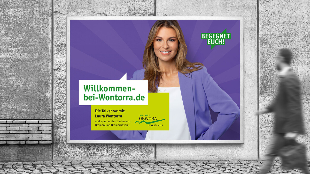 Mit der bekannten Bremer Moderatorin Laura Wontorra haben wir ein regionales Infotainment-Format entwickelt. Im Sinne des Kampagnenclaims "Begegnet euch" haben wir unterschiedlichen Menschen aus Bremen und Bremerhaven in der Talkshow "Willkommen bei Wontorra" eine Bühne gegeben und mit Laura über spannende Themen sprechen lassen. Für zusätzliche Relevanz sorgte ein integriertes Gewinnspiel-Quiz.