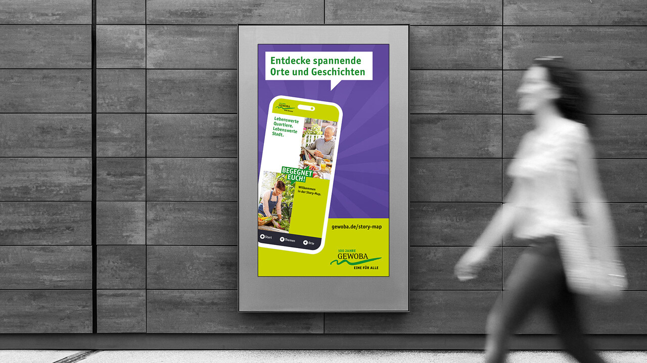 Entwicklung einer unterhaltsamen Image-Kampagne zum 100-jährigen Jubiläum der GEWOBA. Ziel war es, Aufmerksamkeit und Besucher für die Website, Story-App und unterschiedlichen Events zu generieren sowie das Image der GEWOBA im Sinne der Markenpositionierung als bunte und vielfältige Wohnungsgesellschaft in Bremen und Bremerhaven weiter zu festigen.